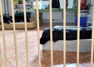 Dorian lag ständig und überall im Weg herum und hatte kein Problem damit, dass wir immer über ihn steigen mussten. Sobald wir diesen Spagat geschafft und den Raum gewechselt hatten, konnten wir gleich wieder mit dieser Gymnastikübung weiter machen, denn schon lag er in der nächsten Türöffnung. Er verfolgte uns regelrecht und wir konnten keinen Schritt ohne ihn tun.